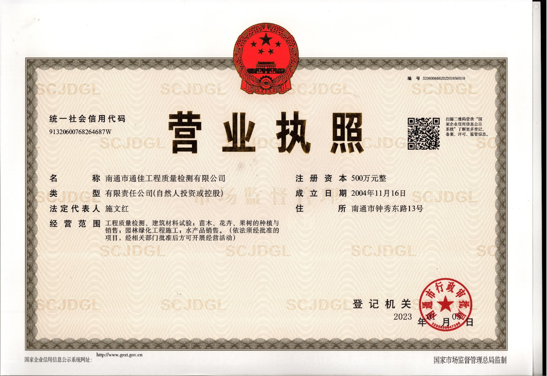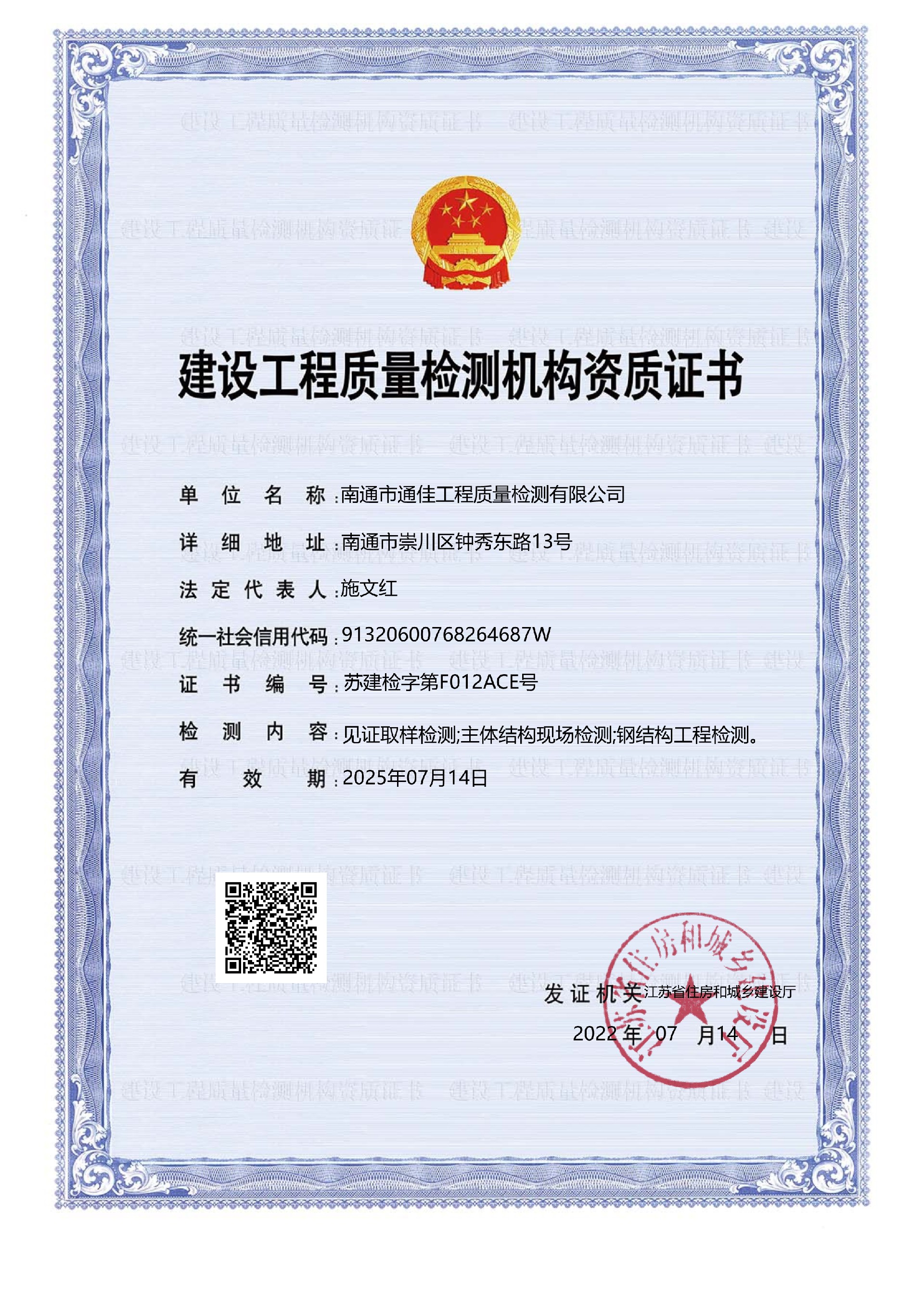 建設(shè)工程質(zhì)量檢測(cè)機(jī)構(gòu)資質(zhì)證書(shū)